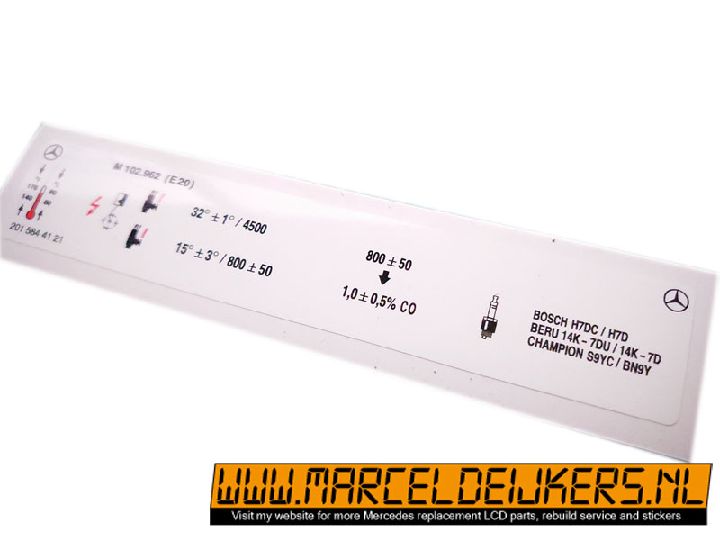 Sticker which replace the old sticker decal with partnumber: 2015844121 / 201 584 41 21 / M102.962 (E20)