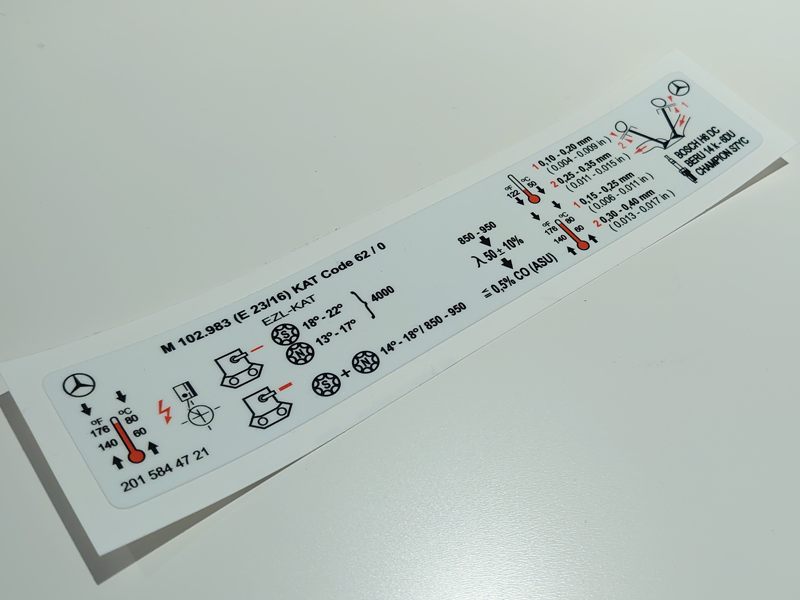 Sticker which replace the old sticker with partnumber: 2015844721 - 201 584 47 21 - 2.3-16 KAT - M102.983