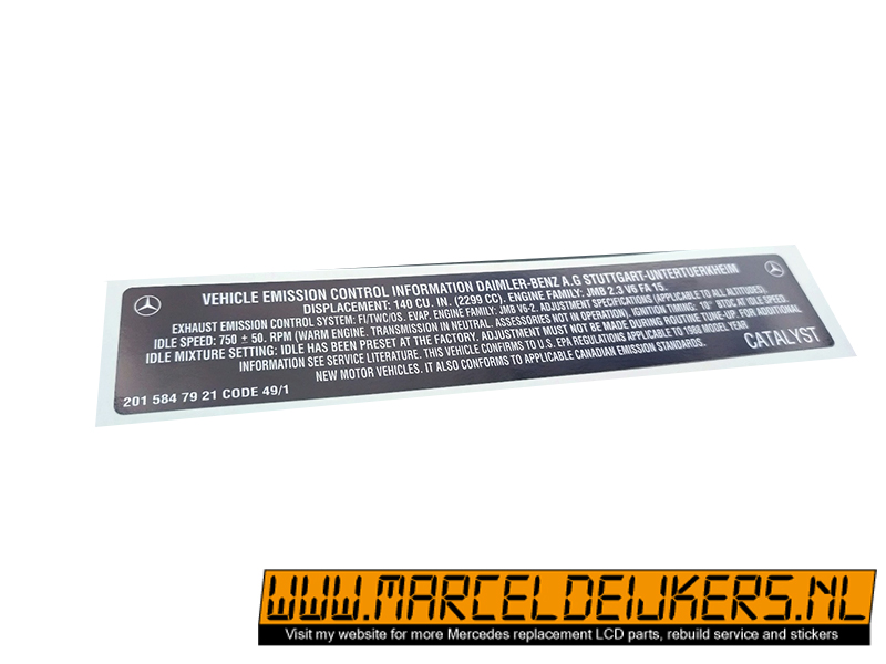 Sticker which replace the old sticker with partnumber: 2015847921 - 201 584 79 21 Vehicle emission control information 1988