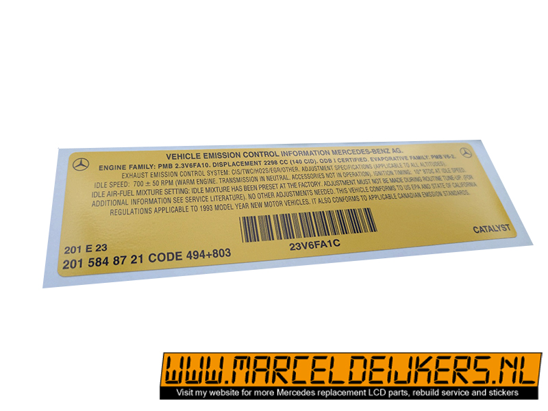 Sticker which replace the old sticker with partnumber: 2015848721 - 201 584 87 21 Vehicle emission control information 1993