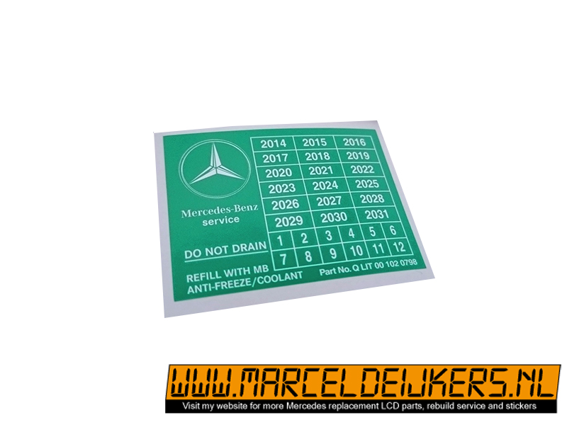 This sticker has been reproduced in the same sizes, shapes and colors to match the old original one which is NLA at mercedes.
