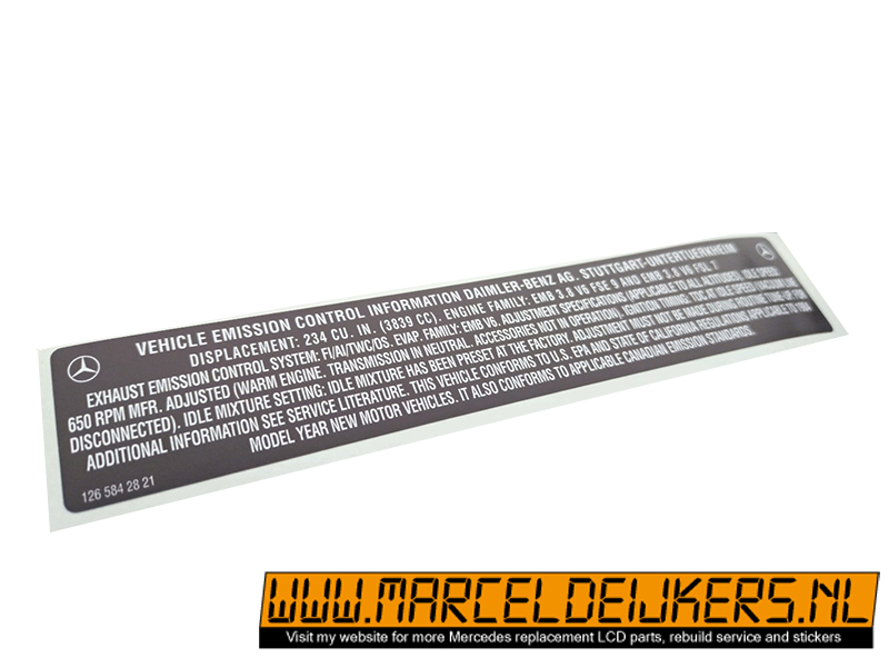 Sticker which replace the old sticker with partnumber: 1265842821 - 126 584 28 21 Vehicle emission control information