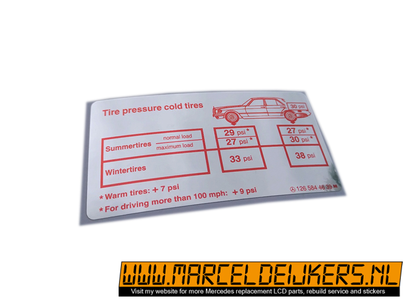 Sticker which replace the old sticker with partnumber: 1265844639 - 126 584 46 39 decal Luftdruck für kalte Reifen