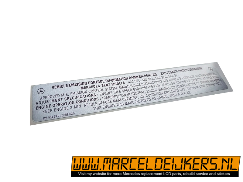 Sticker which replace the old sticker with partnumber: 1265846921 - 126 584 69 21 Vehicle emission control information