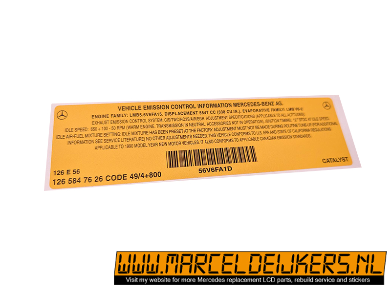 Sticker which replace the old sticker with partnumber:: 1265847626 - 126 584 76 26 Vehicle emission control information
