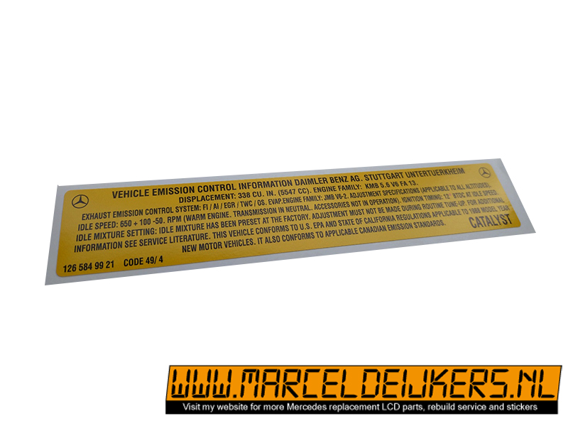Sticker which replace the old sticker with partnumber: 1265849921 - 126 584 99 21 Vehicle emission control information