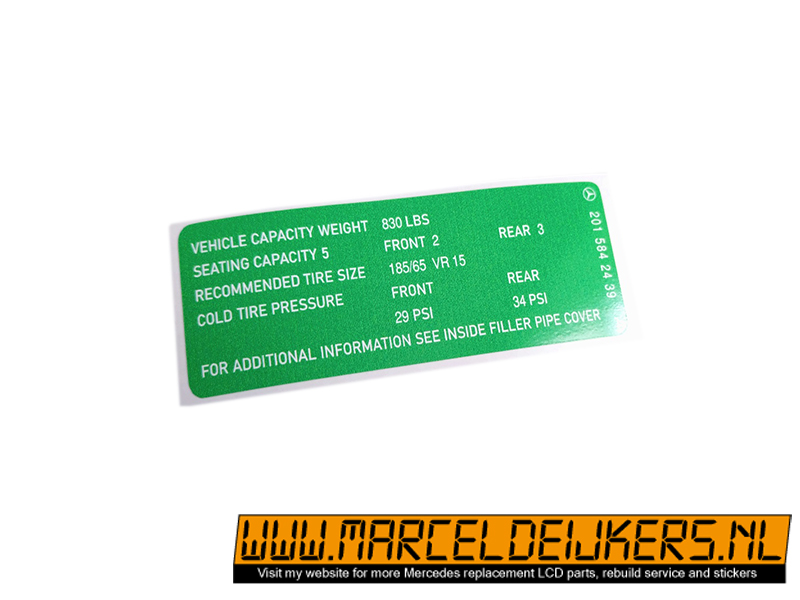 Sticker which replace the old sticker with partnumber: 2015842439 - 201 584 24 39 Tire pressior reifendruck sticker decal