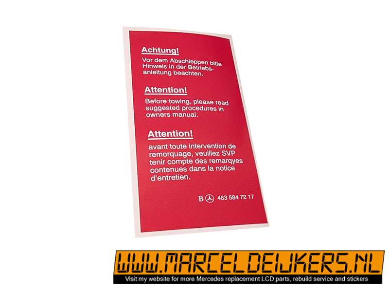 Sticker which replace the old sticker with partnumber: Achtung! Abschleppen 4635847217 - 463 584 72 17 B