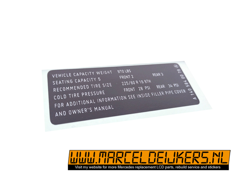 Sticker which replace the old sticker with partnumber: A1405840079 - A 140 584 00 79 tirepressure