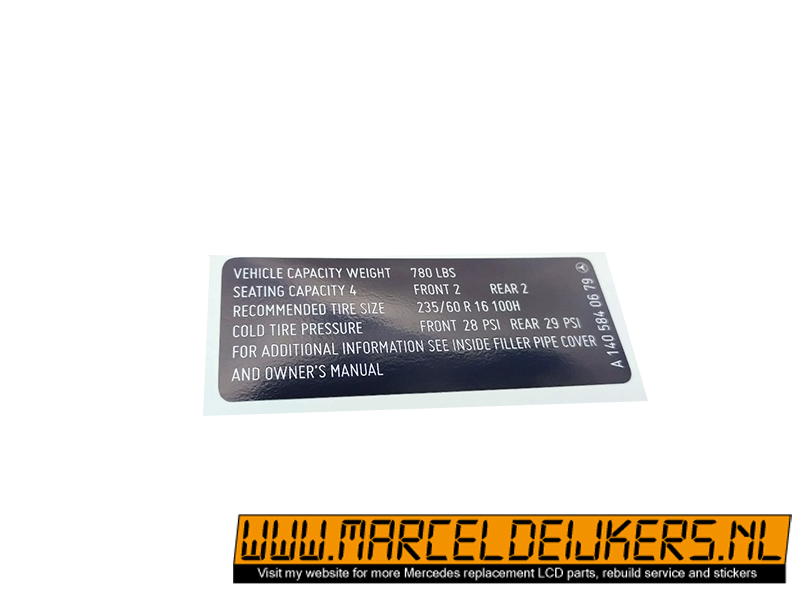 Sticker which replace the old sticker with partnumber: A1405840679 - A 140 584 06 79 tirepressure